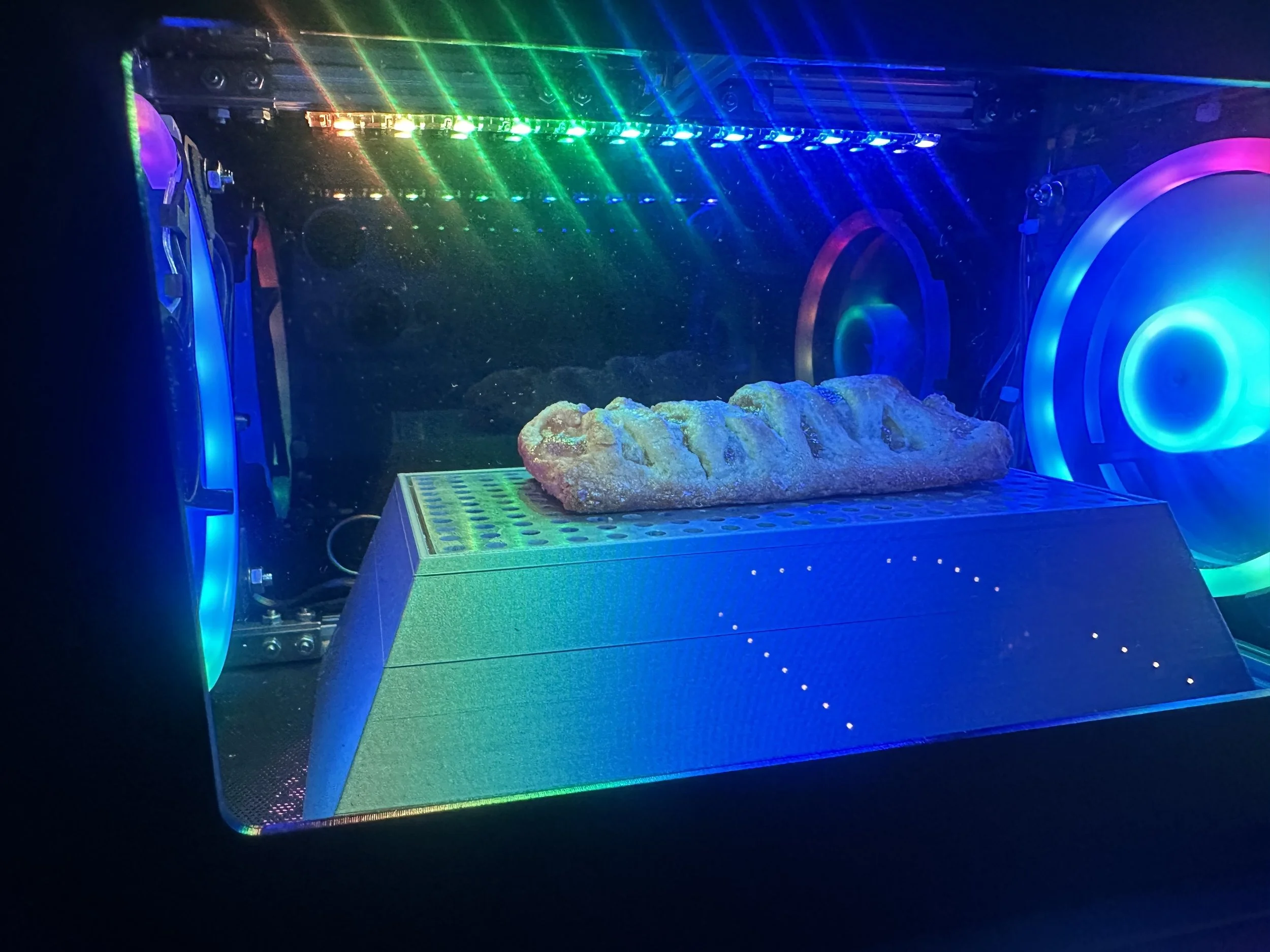 Created for an event during McDonald’s collaboration with Genshin Impact, the Gaming PC Pie Warmer harnesses the excess heat from your gaming PC and uses it to warm a McDonald’s apple pie.